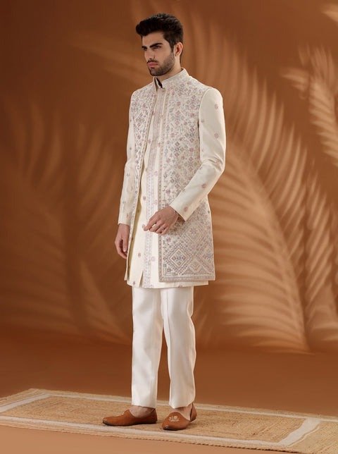 Ivory Embroidered Indowestern