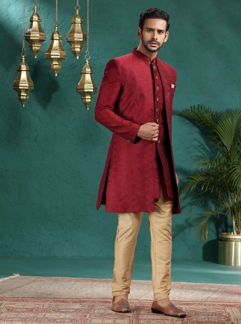 Maroon Embroidered Indowestern